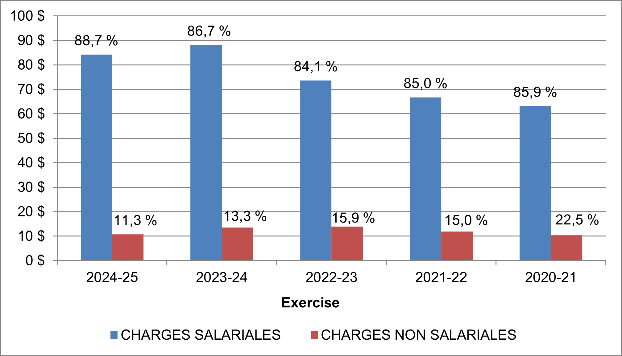 En 2023-2024, les charges s'élèvent à 6 347 $ (6 029 $ en 2023-2024). Pour les membres du groupe 1, les charges correspondent à environ 1,02 fois (1,02 fois en 2023-2024) les cotisations des employés et pour les membres du groupe 2, à environ 1,00 fois (1,00 fois en 2023-2024) les cotisations des employés.